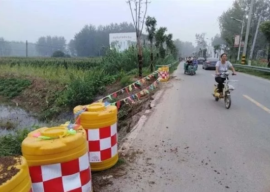 日前,阜南地区连降暴雨,阜南分局在道路巡查时发现X056南陶路李寨村K9+200处涵洞砖砌挡墙被暴雨冲毁,导致路肩出现8长、2.2米深的塌方路段,存在较大安全隐患。分局立即对该路段设置临时安全防护设施,并及时组织施工人员紧急抢修。