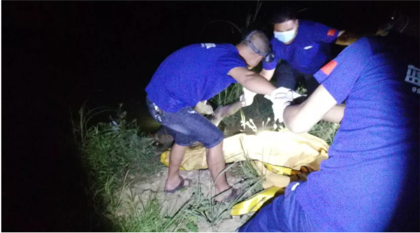 辖区公安与阜阳蓝天救援队,立即使用绳索与被单将浮尸裹住后,慢慢移至岸边并打捞上来。