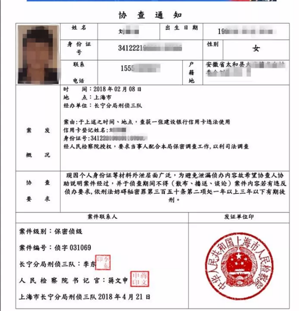 随后,这名银行工作人员让小雨赶紧报警,又告诉小雨那张透支的信用卡是在上海办的,要转到上海处理,很“热心”的帮小雨转接了一位自称是上海警察的人。