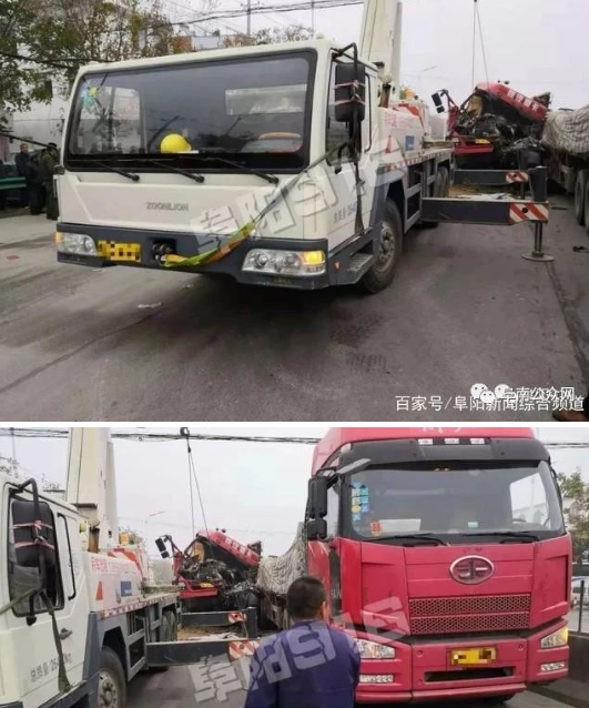 阜阳两辆重型半挂追尾!一司机当场身亡