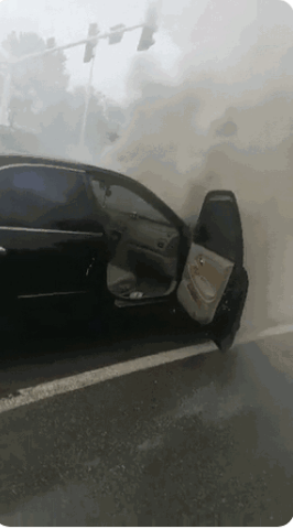 阜阳一轿车行驶中自燃,现场浓烟滚滚……