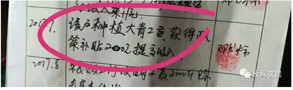 其中一项注明:“2017年7月获得政策补贴2000元”,当邓书标妻子问及这两千元给谁了,村干部邓启民拿起笔就把扶贫手册上2000元改成200元......