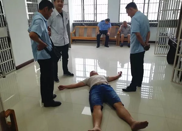 一路武某都很正常,到了法院临时羁押室后,他的表演开始了。